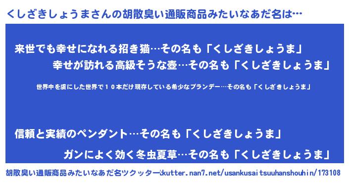 | 意味不明あだ名 | 『住所不定無職くしざきしょうま(71歳)』 |