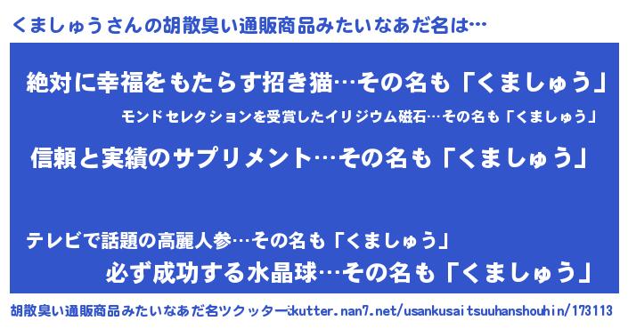 | 欧米人風あだ名 | 『ウサインくましゅう』 |