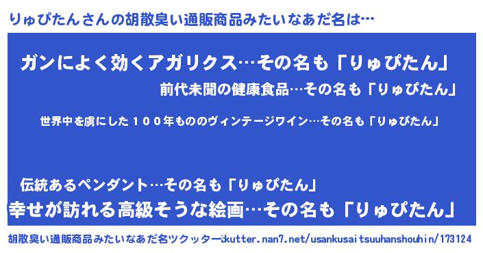 | 意味不明あだ名 | 『住所不定無職りゅぴたん(12歳)』 |