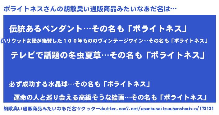 | 意味不明あだ名 | 『自称ポライトネス』 |