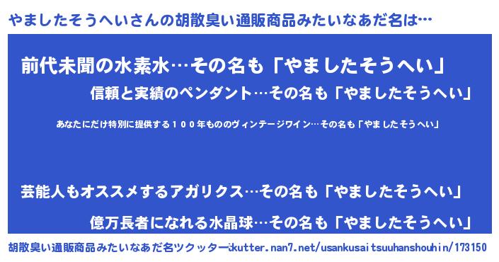 | 意味不明あだ名 | 『住所不定無職やましたそうへい(2歳)』 |