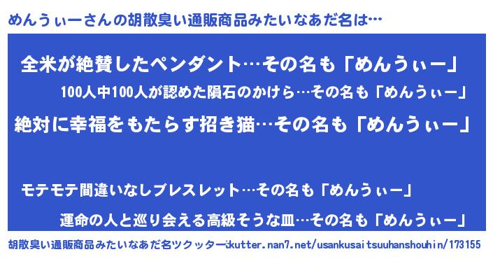 | 意味不明あだ名 | 『永久保存めんうぃー』 |