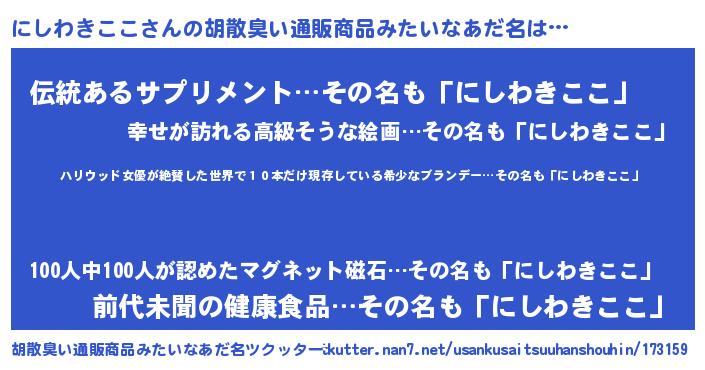 | ヘコむあだ名 | 『にしっちょ』『にしわきここ(笑)』 |
