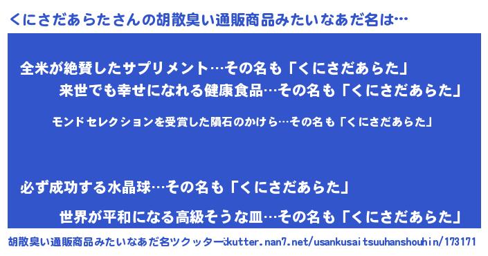 | ヒーロー風カッコイイあだ名 | 『天空の使者くにさだあらた』 |