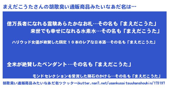 | 意味不明あだ名 | 『住所不定無職まえだこうた(43歳)』 |