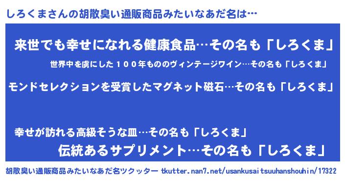 | 欧米人風あだ名 | 『ダニエルしろくま』『ウサインしろくま』 |