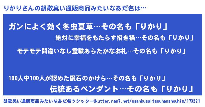| 意味不明あだ名 | 『ペロリンりかり』『自称りかり』 |
