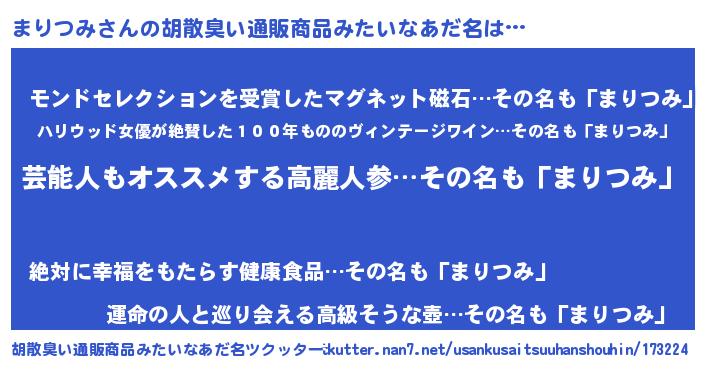 | 意味不明あだ名 | 『自称まりつみ』『まりつみフォーエバー』 |