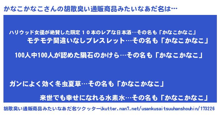 | ヘコむあだ名 | 『かなこかなこ(遠い目)』『かなにゅー』 |