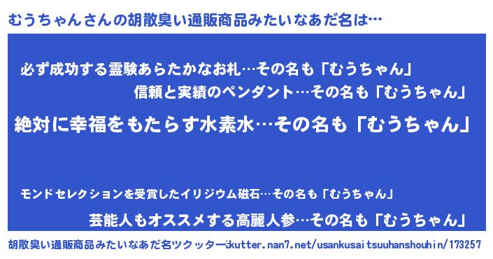 | 意味不明あだ名 | 『永久保存むうちゃん』『自称むうちゃん』 |