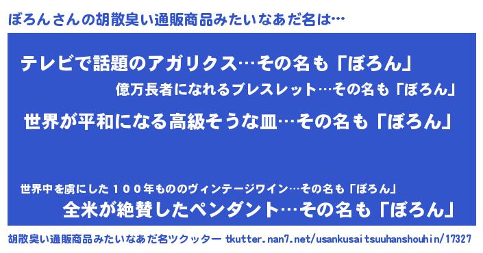 | 意味不明あだ名 | 『ぼろんフォーエバー』『自称ぼろん』 |