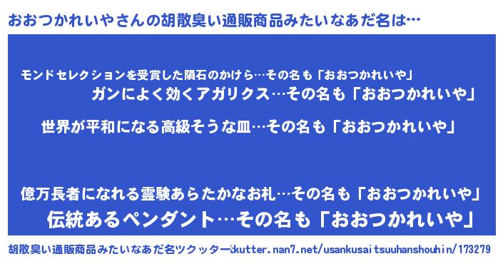 | 欧米人風あだ名 | 『おおつかれいや・ステッグマイヤー』 |