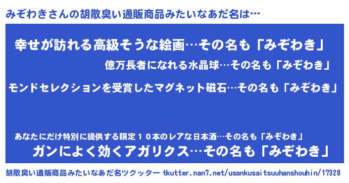 | ヒーロー風カッコイイあだ名 | 『天空の使者みぞわき』『仮面ミゾダー』 |