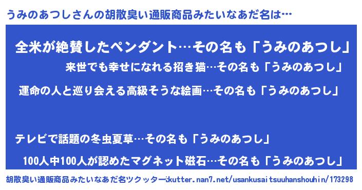 | 意味不明あだ名 | 『うみのあつしフォーエバー』 |