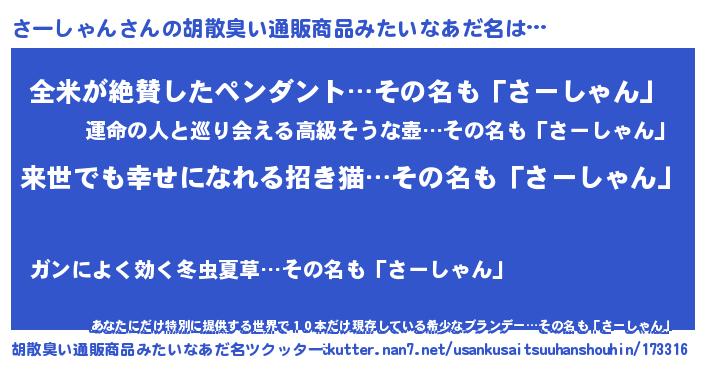 さーしゃんさんの胡散臭い通販商品みたいなあだ名をツクッター!