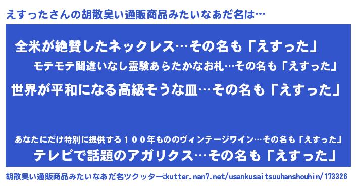 | 意味不明あだ名 | 『えすったフォーエバー』『自称えすった』 |