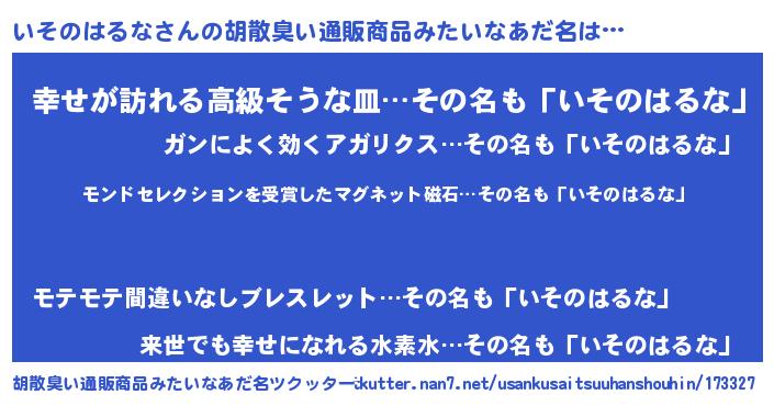 | 意味不明あだ名 | 『眠気覚ましガムいそのはるな味』 |