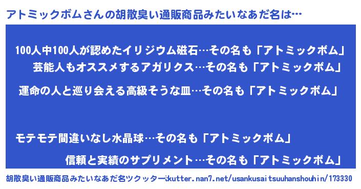 | 意味不明あだ名 | 『アトミックボムフォーエバー』 |