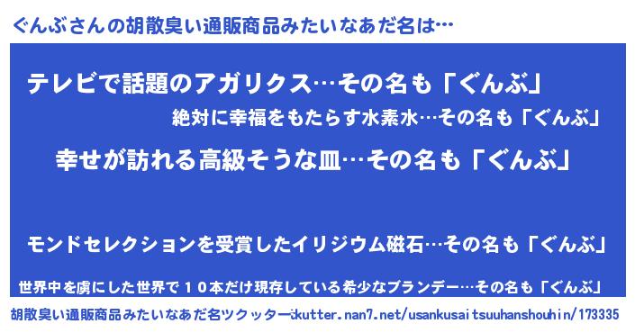 | 肩書あだ名 | 『ぐんぶ上級大将』『ぐんぶディレクター』 |