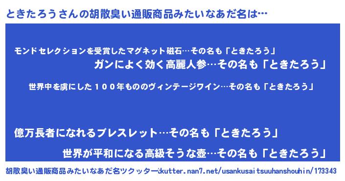 | ヒーロー風カッコイイあだ名 | 『仮面トキダー』『慈愛の使者ときたろう』 |
