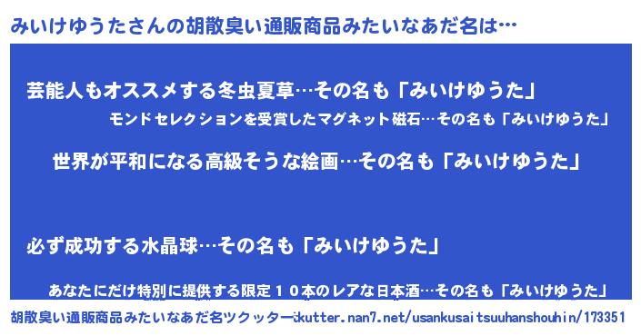| 男性向けラノベタイトル風あだ名 | 『転生したらみいけゆうただった件』 |