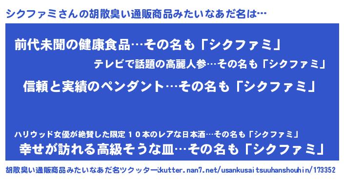 | 男性向けラノベタイトル風あだ名 | 『シクファミスレイヤー』 |