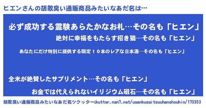 | ヘコむあだ名 | 『ヒエふぇ~』『ヒエン(小並感)』 |