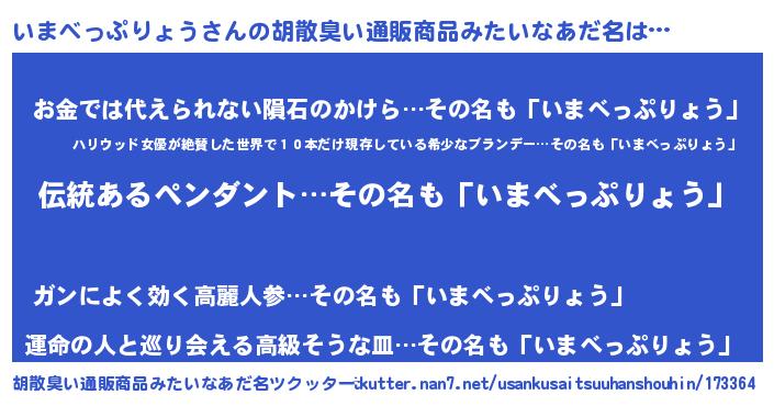 | 肩書あだ名 | 『いまべっぷりょう上級大将』 |