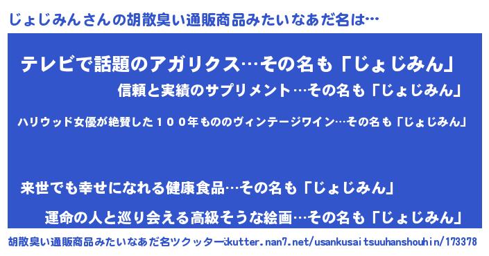 | 意味不明あだ名 | 『住所不定無職じょじみん(9歳)』 |