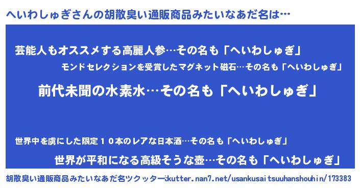 へいわしゅぎさんの胡散臭い通販商品みたいなあだ名をツクッター!