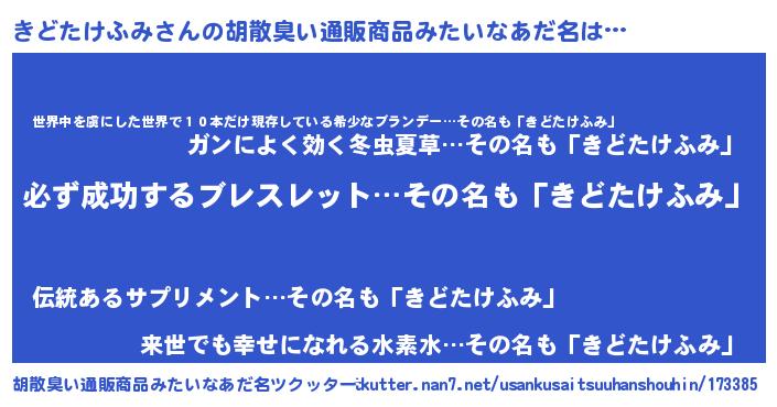 | 男性向けラノベタイトル風あだ名 | 『きどたけふみの憂鬱』 |