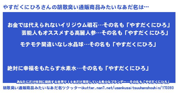 | ヘコむあだ名 | 『やすにゅー』『やすだくにひろ(笑)』 |