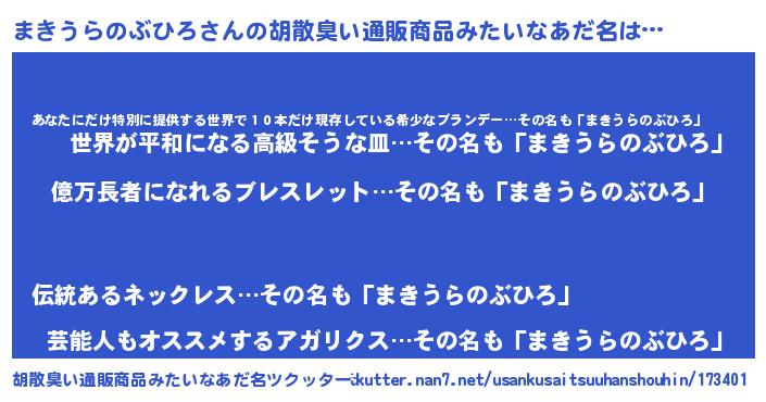 | 肩書あだ名 | 『まきうらのぶひろCEO』 |