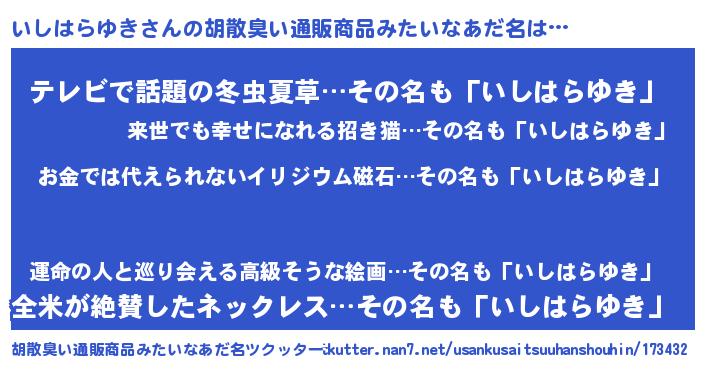 | ヘコむあだ名 | 『いしっ子』『いしはらゆき(震え声)』 |