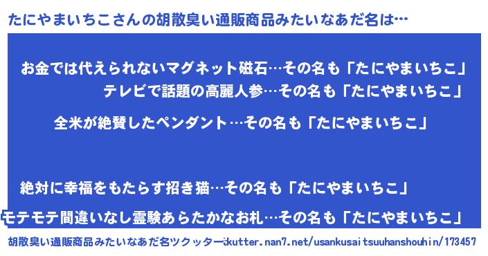 | 意味不明あだ名 | 『とにかく怪しいたにやまいちこ』 |