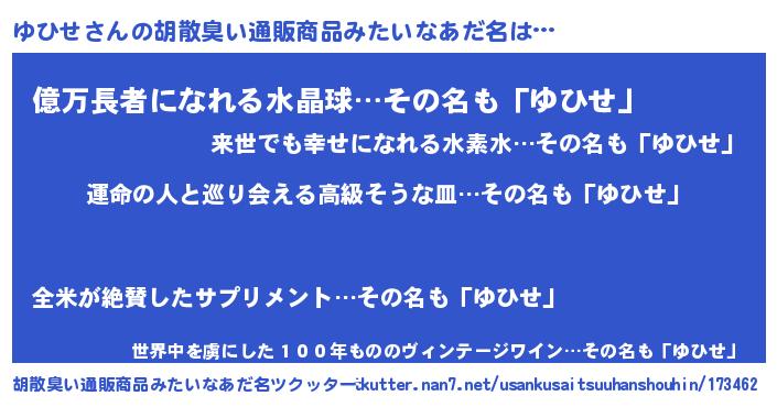 | ポケモン風あだ名 | 『ユヒゴンZ』『ユヒセダネ』 |