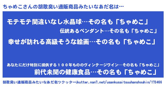 | 女子向けラノベタイトル風あだ名 | 『ちゃめこの雑貨屋さん』 |