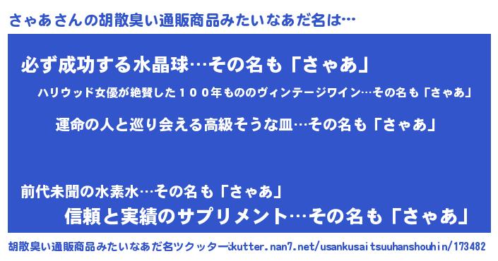 | 女子向けラノベタイトル風あだ名 | 『さゃあの玉の輿計画!』 |