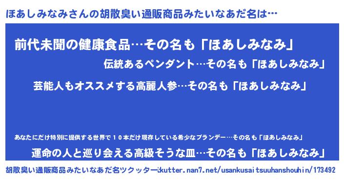 | 意味不明あだ名 | 『自称ほあしみなみ』 |