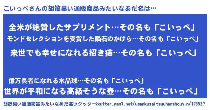 | 意味不明あだ名 | 『永久保存こいっぺ』『ニラ科こいっぺ属』 |