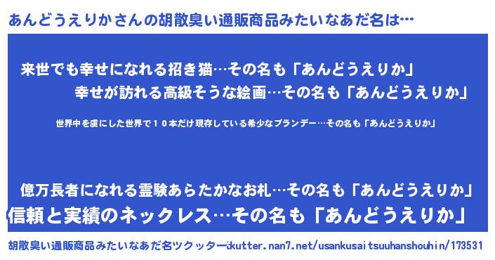 | 伝説のあだ名 | 『古より伝わる勇者あんどうえりか』 |