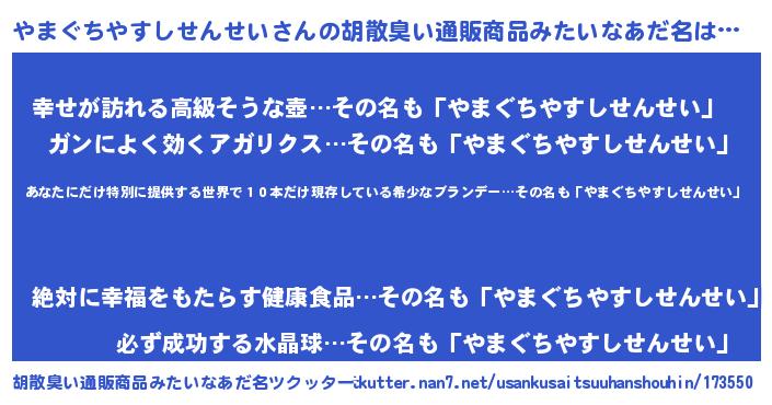 | ヘコむあだ名 | 『酢こんぶ』『やまにゅー』 |
