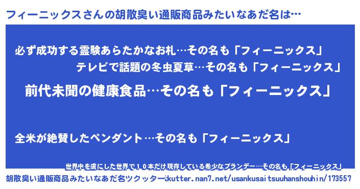 | 意味不明あだ名 | 『永久保存フィーニックス』 |