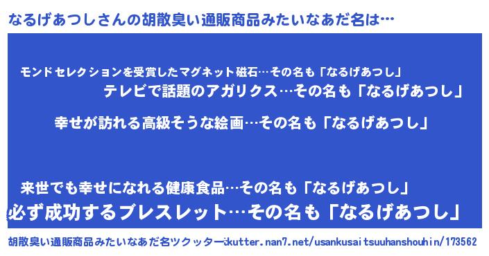 | 欧米人風あだ名 | 『なるげあつしクリステル』 |