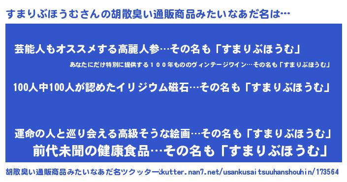 | ヘコむあだ名 | 『すまりぶほうむ(爆)』『酢こんぶ』 |