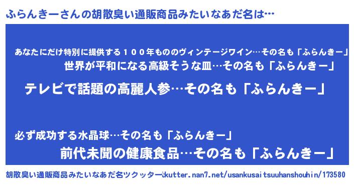 | 意味不明あだ名 | 『自称ふらんきー』『永久保存ふらんきー』 |