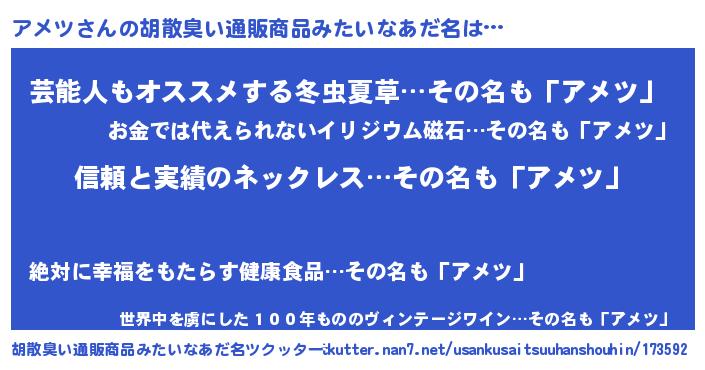 | 意味不明あだ名 | 『とにかく怪しいアメツ』『自称アメツ』 |