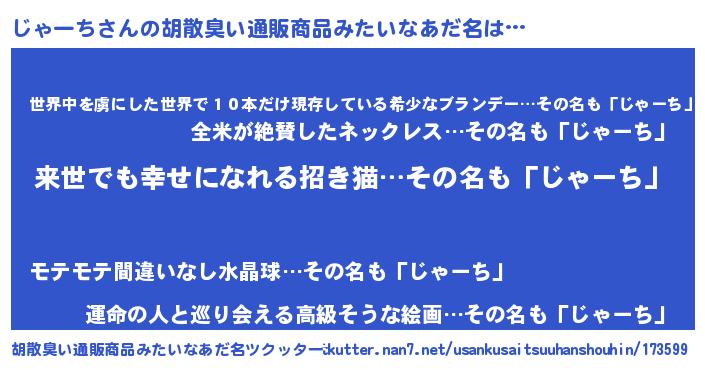 | 男性向けラノベタイトル風あだ名 | 『じゃーちという概念が存在しない退屈な世界 』 |