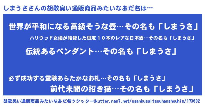 | 意味不明あだ名 | 『とにかく怪しいしまうさ』 |