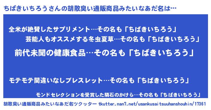 | 意味不明あだ名 | 『永久保存ちばきいちろう』 |